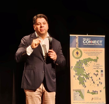 - Ms. Irene Notias, Founder and Director of Project Connect, introduced the Kick Start concept, which she created during the 2020 pandemic to offer hope, connection, and meaningful engagement to students and members confined at home. She highlighted Project Connect’s expanding educational initiatives, including the Adopt a Ship and νιάτα ψηλά™ youth‑empowerment programs.