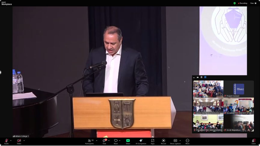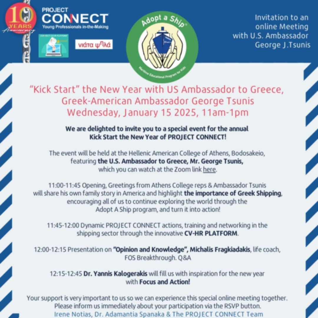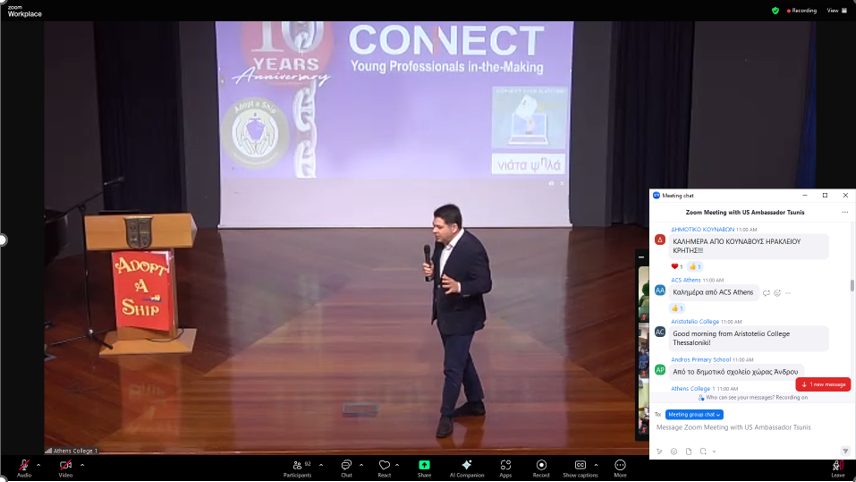 Emphasizing this year’s theme, “FOCUS & ACTION,” the event took place in a dynamic “phygital” (physical and digital) format, hosted by Athens College – Bodosakeio in Kantza, Pallini, one of the first seven schools to enroll in Project Connect’s Adopt a Ship program, in presence of U.S. Ambassador to Greece, George J. Tsunis. Present at the event were, also, among others President of Athens College, Dr Pollalis and Mr Kalogeras, Athens College Elementary School Principal.