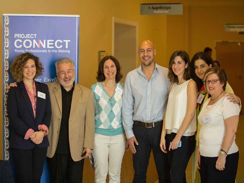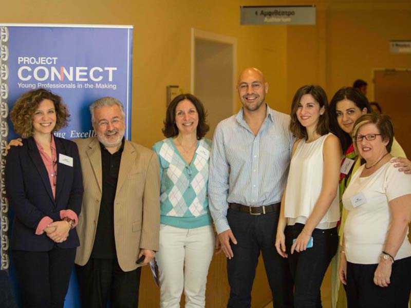 The Project Connect team consists of people from all walks of life who contribute their knowhow: Effie Kotika, Administration from Sara Lee, Stelios Korres, Sandy Ailamaki and Natasha Botes, Legal, Katia Galouka, Shipping HR, Panos Sotiropoulos and Efharis Perpinia, Human Resources, Eleni Economopoulou, Sociologist, Christina Zervos, Retail business owner, Irene Notias, Shipping business owner.