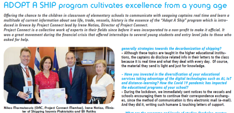 “ADOPT A SHIP program cultivates excellence from a young age” – Elnavi Magazine – Issue May 2020